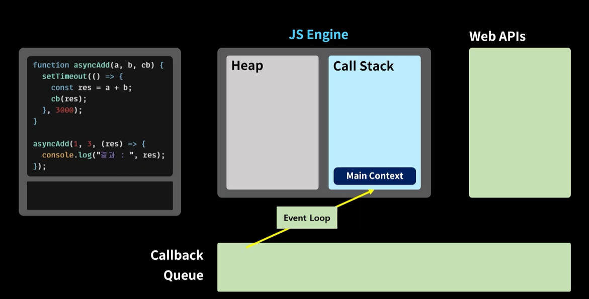 asyncAdd 함수가 실행 된 후 ,Web APIs에서 setTimeout 은 없어짐