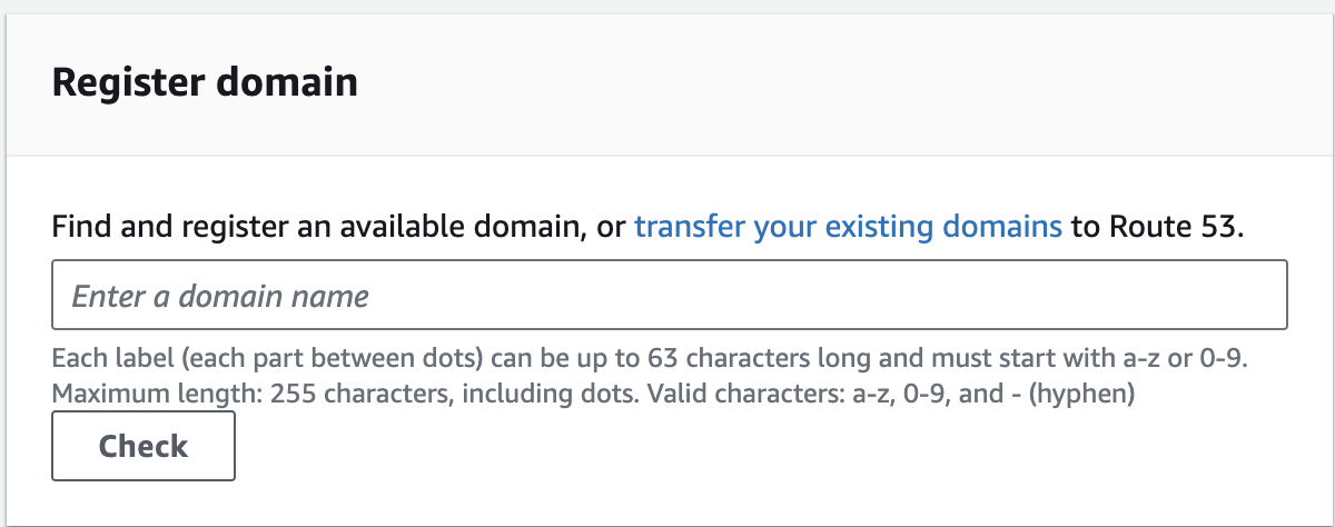 Route 53으로 가서 transfer your existing domain 링크로 이동한다.