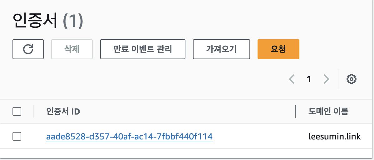 위와 같이 도메인과 인증서가 pending이나 progress 단계임을 확인 할 수 있다.